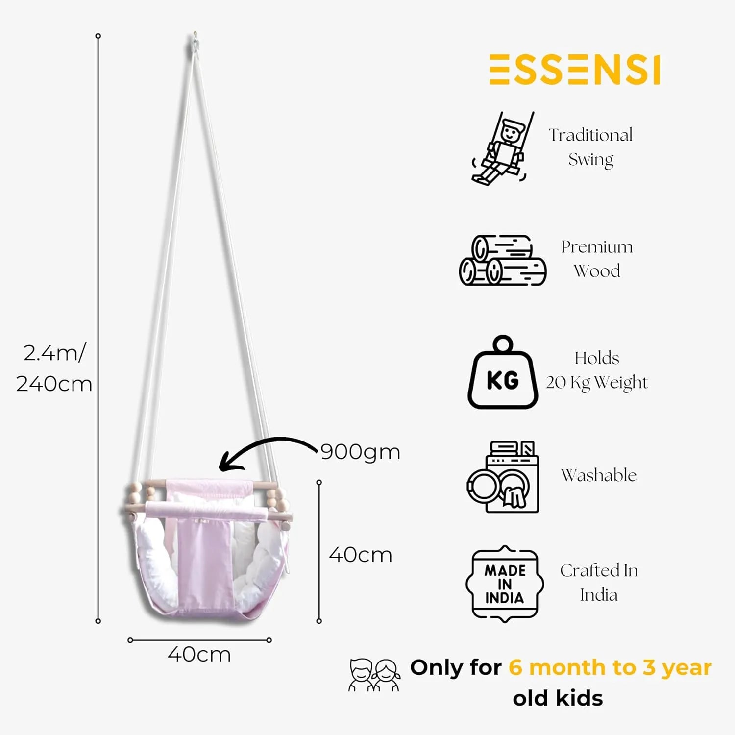Indoor & Outdoor Baby Swing With Pillows | 6 Months to 4 Years